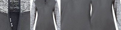 96% polyester, 4% spandex bonded to brushed jersey; Sleeves, hood and panels have the Tech Print pattern detail; Adjustable hood; Adjustable drop tail hem with hidden drawcord; Dual front and chest zippered pockets; Dual inside pockets;