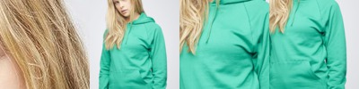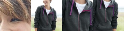 - Raw-edge hood opening, pocket seams, cuffs, waistband, zipper placket and side seams