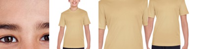 4 oz., 100% micro-polyester; Moisture-wicking; UPF 30+ protection; Athletic fit; Neck tape; 1/4" topstitching; Transitioning from heat-seal label to tear away label. Inventory may be mixed;