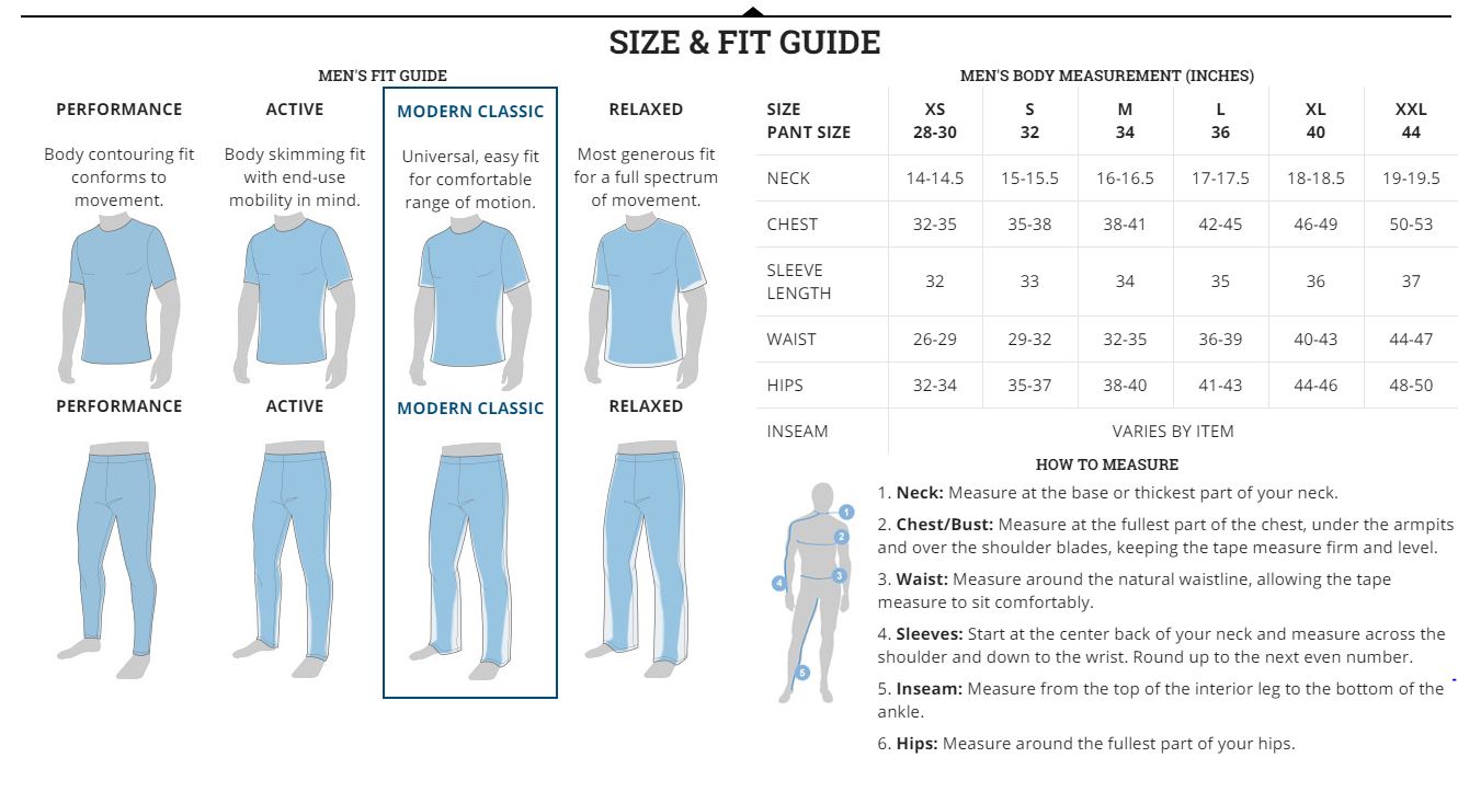 • Small, Medium, Large, X Large, 2X Large, 3X Large