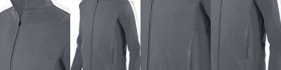 Heavyweight 100% polyester matte brushed tricot ; Heat sealed label ; Center front zipper ; Contrast color inserts on collar and shoulder ; Set-in sleeves ; Front seam pockets ; Self-fabric cuffs ;