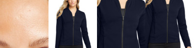 Casual and soft, this cotton-rich bomber gives a classic silhouette an on-trend twist. 6.5-ounce, 59/41 combed ring spun cotton/poly French terry Tag-free label Front pockets 2x2 rib knit collar, cuffs and hem