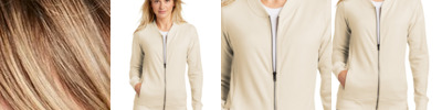 • Reverse-coil center front zipper and hand pockets