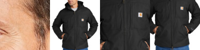 This hoodie has the soft feel of a favorite sweatshirt with the warmth and durability that rivals a jacket. 10.5-ounce, 55/45 cotton/poly blend Attached three-piece hood with drawcord closure Full-length brass front zipper Two front hand warmer pockets Stretchable, spandex-reinforced, rib knit cuffs and waistband Carhartt label sewn on left hand warmer pocket Relaxed fit