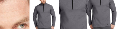 Our first Luuma style for him. This 1/2-zip has stretch and is designed for home-to-gym (and back again) style and comfort. 7.1-ounce, 57/38/5 modal/poly/spandex fleece OGIO heat transfer label for tag-free comfort Self-fabric cadet collar Coil zipper Seaming details at sleeves Side panel details Open hem Reflective O heat transfer on front left hem