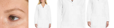65/35 poly/cotton poplin Locker loop Left chest pocket with pen slot Top-loading front pockets Interior tablet pocket Side seam opening for easy access to pants pockets Back yoke 4-button placket opening Center back vent Wink heat transfer logo at left pocket Size medium: 38-inch back length