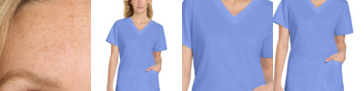 78/20/2 poly/rayon/spandex Wrap top neckline Front princess seams Shoulder badge loop Top-loading front pockets with interior pockets and pen slot Side vents Wink heat transfer logo at left pocket Modern fit