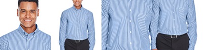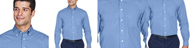 4.1 oz., 60% cotton, 40% polyester; fine yarn count shirting; true Non-iron performance straight from the dryer; Classic Fit for professional appearance; pearlized buttons; patented pucker-free taped seams; specially fused collar, cuffs and placket; split back seam with bias cut back yoke; rolled button-down collar; adjustable "Comfort Collar" for up to an inch of stretch at neck; left-chest pocket;