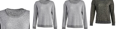 - Solid 1x1 rib inside collar, cuffs and waistband