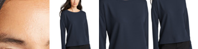 Offering a stylish look for desk-to-dinner wear, this silhouette is distinguished with a fine, free-flowing crepe fabric and a relaxed fit. The stay-put elastic cuffs mean no rolling necessary. Hem reaches low at the hips with a slight drop tail for elegant drape. Fabric+Weight 4.3-ounce, 95/5 poly/spandex Features+Benefits Stay-put elastic cuff sleeves Slightly dropped shoulders Bust darts Center-back inverted pleat Back yoke Drop hem Relaxed fit