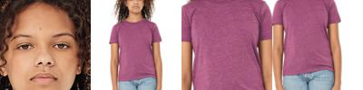 4.3 oz., 50% poly / 38% combed ringspun cotton / 12% rayon; 30 singles; Set-in neck in 1x1 rib, 5/8"; 5/8" turnback hem with double-needle stitching; Shoulder-to-shoulder neck taping; Slightly rounded at the hem; Made in USA;
