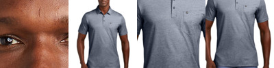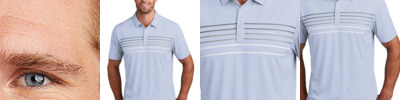 Tap into an unprecedented look with this wrinkle-resistant, quick-drying polo that features 4-way stretch and a large-scale chest stripe overlaid with texture. 4.4-ounce, 58/42 cotton/polyester Easy wash and wear Self-fabric collar Three-button placket with dyed-to-match buttons Embroidered TM logo on left chest Open hem sleeves Side vents