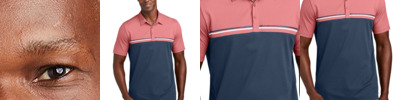 Catch a sunset once in a while in this easygoing, colorblocked polo. A center white stripe gives it a sporty look, while wrinkle resistance, 4-way stretch and quick-drying technology ensure unparalleled performance. 4.4-ounce, 57/43 cotton/polyester Easy wash and wear Self-fabric collar Three-button placket with dyed-to-match buttons TM logo woven label at left sleeve Open hem sleeves Side vents